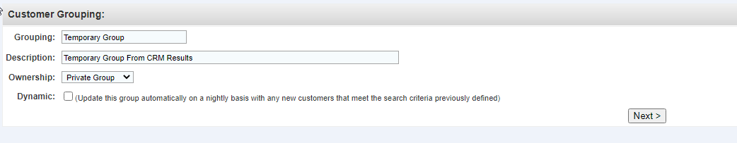 - Save to New Group will allow you to save and name the group (most commonly used when you are going to run a campaign with these customers)
