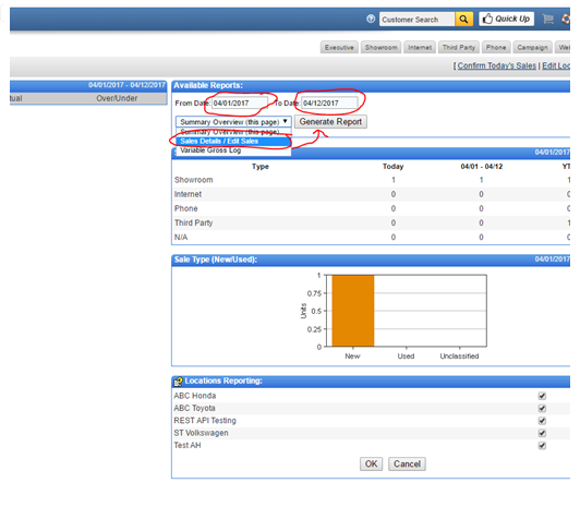 - If you didn’t have it saved as a favorite before, and you chose Sales Reporting, the next screen you will select the report from the drop down, and choose your dates either before or after the report is pulled up. Click Generate Report when ready.